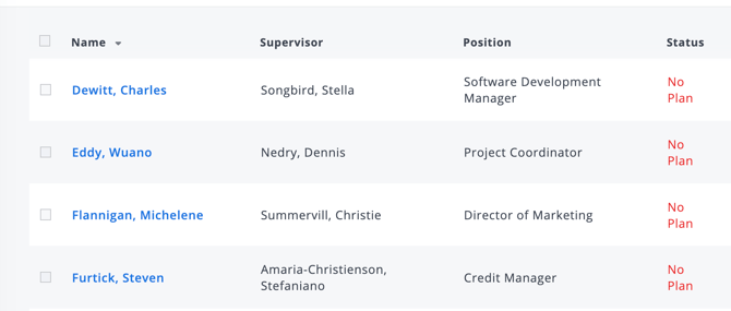 When an employee doesn't have a draft or active plan, you will see a red No Plan status in your employee list.